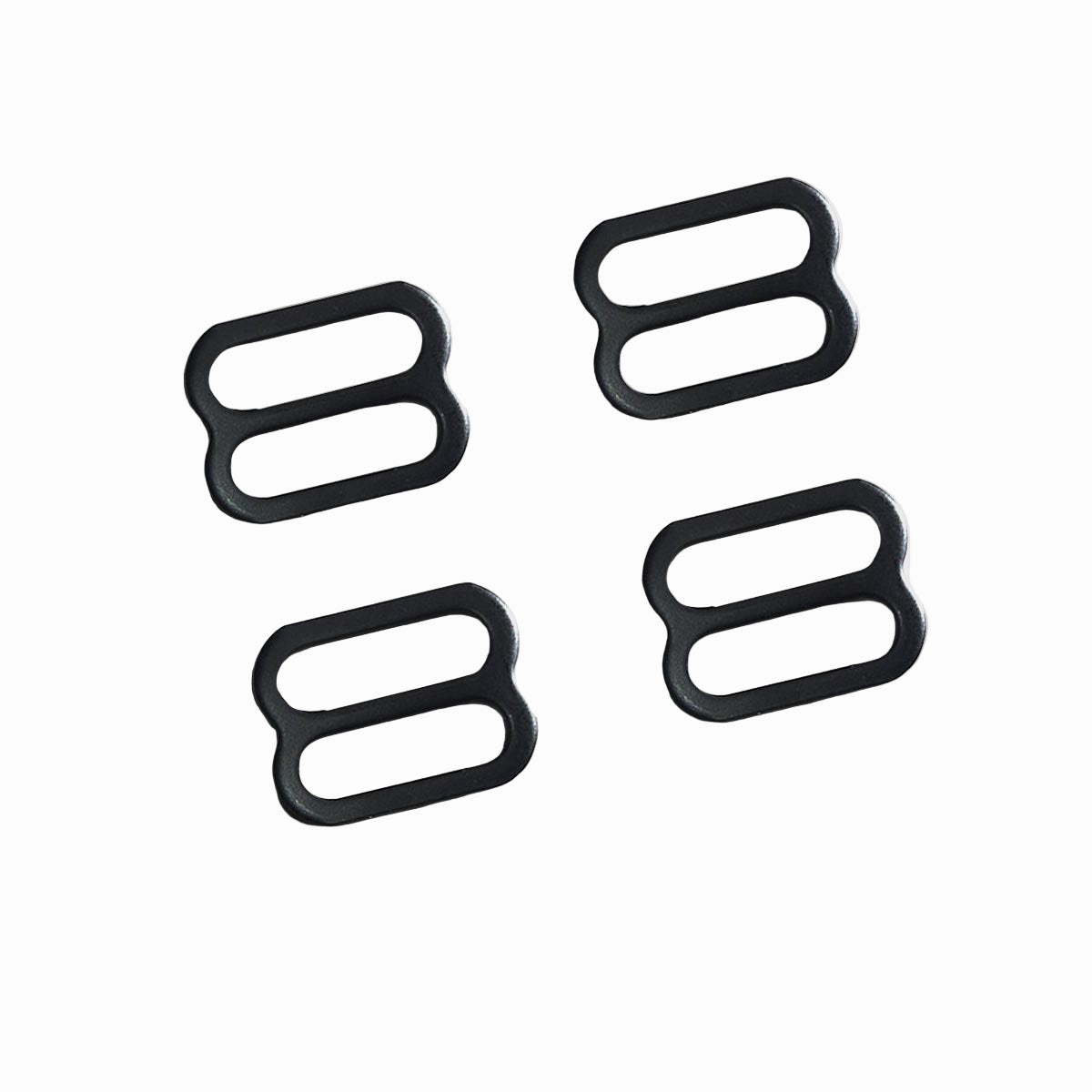 Sold in a package of 4, these 1″-wide mouth steel tri-glide slider buckles are coated black.